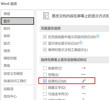 选择【文件】--【选项】,在弹出页面,选择【显示】,去掉段落标记前面的勾即可。
