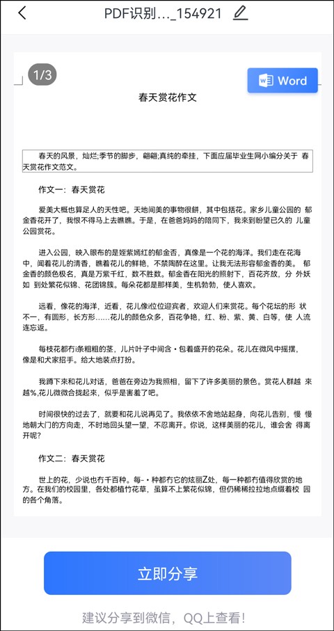 第五步:pdf成功转化为word,预览界面中,文字内容准确无误,排版正常美观,可以分享给其他人或者发送到电脑上。