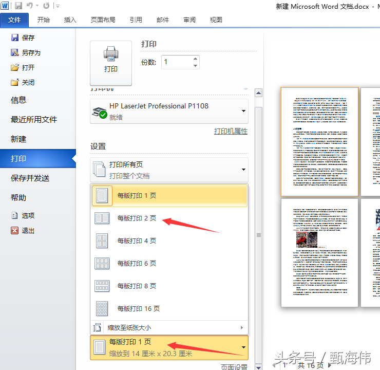 这个比较节约纸张,但问题也很明显,建议最多选择2版或4版,再多的话,打印出来根本没法阅读,毕竟是通过缩放打印出来的。