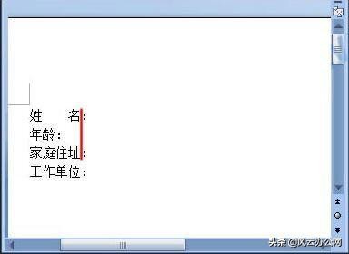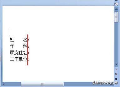 3、现在就会看到“姓名”与“家庭住址”对齐了,而且分毫不差,下图中红色的竖线就是对齐的标识。