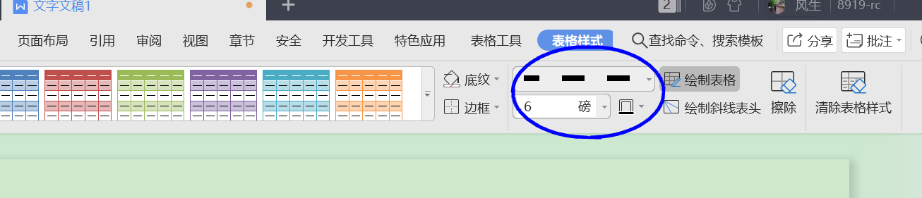 点击“表格样式”,在出现的快捷工具栏中,选择“线型”,调整“线宽”参数设定粗细程度,下拉“边框颜色”选择线条颜色。