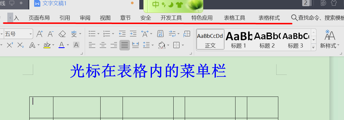 然后,选中表格,在菜单栏中会出现关于表格的选项。