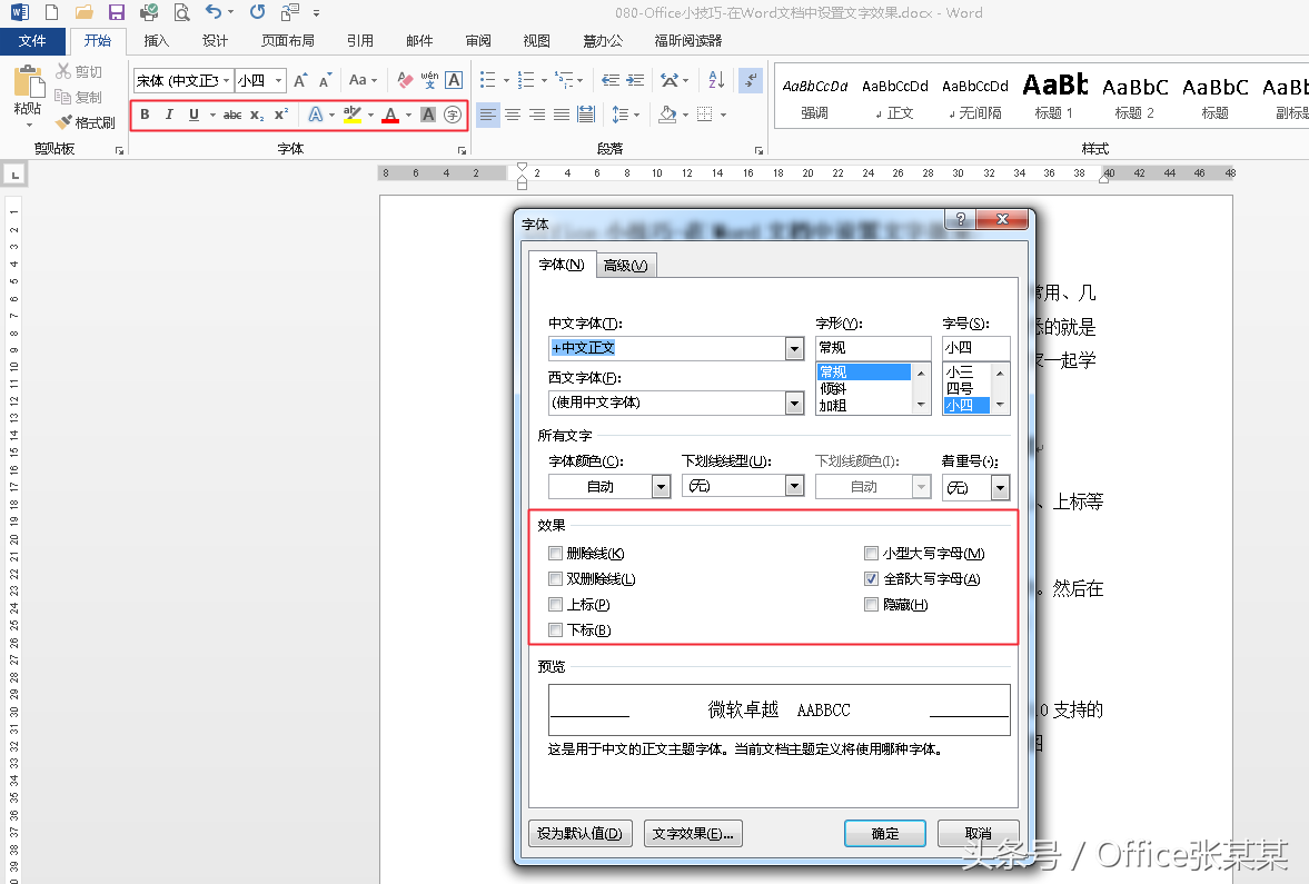 我们在编辑文档的过程中,除了调整段落来展示文本效果以外,最常用、几乎每个文档都会用到的功能就是调整字体效果,其中最为大家所熟悉的就是为文本加粗【CTRL+B】了,其次就是倾斜和下划线,今天小编和大家一起学习其他不一样的文字效果设置的方法。