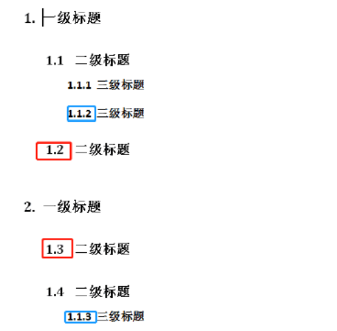 定义完多级标题后,经常会出现下面这个问题,就是下级标题不随上级标题变化而变化。自定义多级标题样式原本是希望能够自动生成有正确编号的标题,如果通过手动修改或者设置编号值,就失去了自动编号的意义。