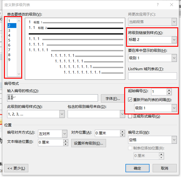 3) 然后在该链接的标题样式中更新标题以匹配所选内容,这样该级全部标题序号就都正常了;