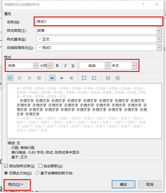 然后根据属性内容定义各种格式,即可创建一个新样式。