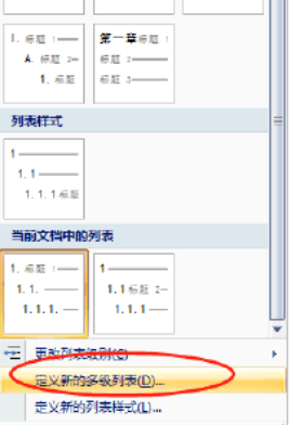 定义了新样式以后,点击图4中的列表下拉框,然后点击图5中的"定义新的多级列表"。