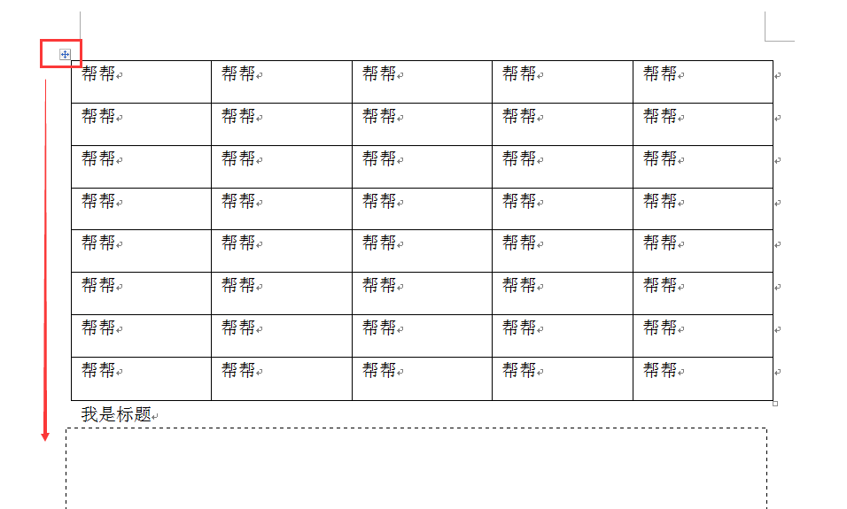 直接将整个表格拖移到标题的后方。