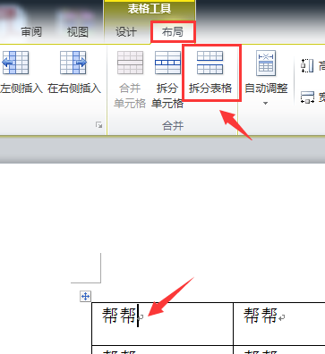 我们还能这样,点击表格第一行的任意单元格,在布局选项中,点击拆分表格。