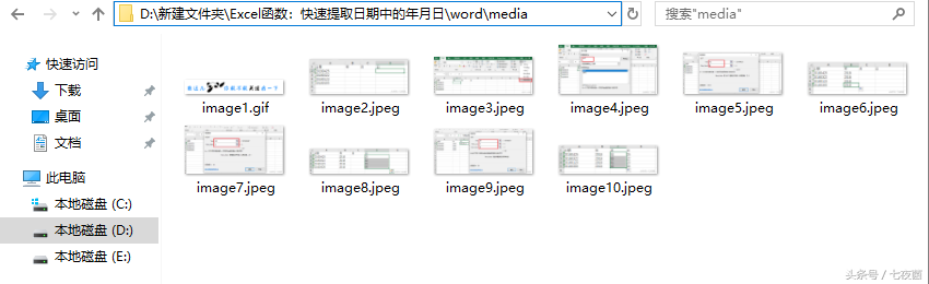 2、解压缩这个文件,进入后依次打开word和media文件夹就可以看到所有图片都在里面,并且已按顺序命名好。