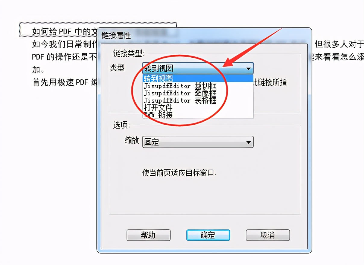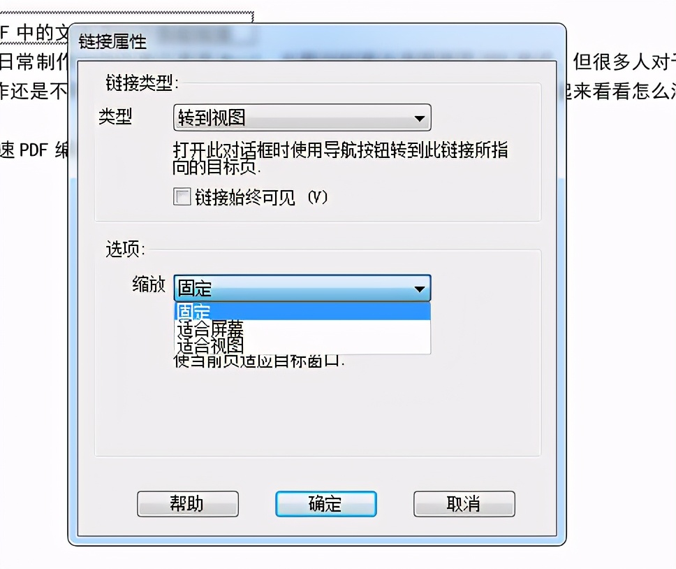 一般转到视图适用于目录的外部跳转,将类型选择转到视图后,然后将PDF页面停留在要跳转后的位置后点击“确定”即可。