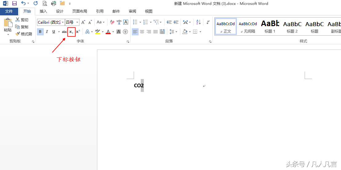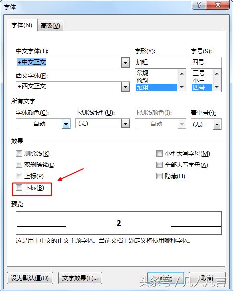 注:在word2010以后的版本中,按字体组的下标按钮较方便。