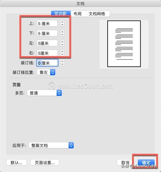 2、在其下拉菜单中选择【自定义边距】。在页面设置窗口中,我们把页边距设置为5厘米,点击【确定】,如下图所示: