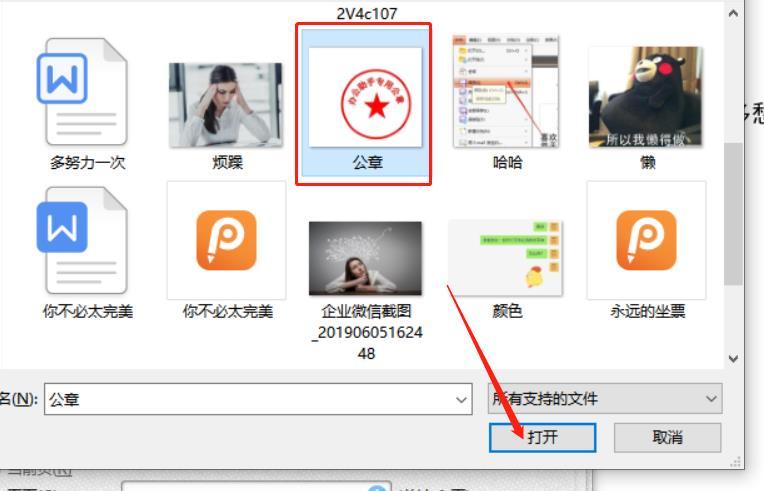6、然后选择添加自己想要添加的图章文件,然后点击“打开”。