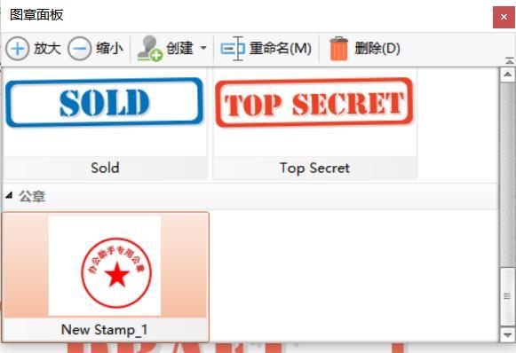 9、接着选择新图章,并关闭图章面板,然后我们就可以在PDF文件中的任意位置添加自定义的图章文件了。