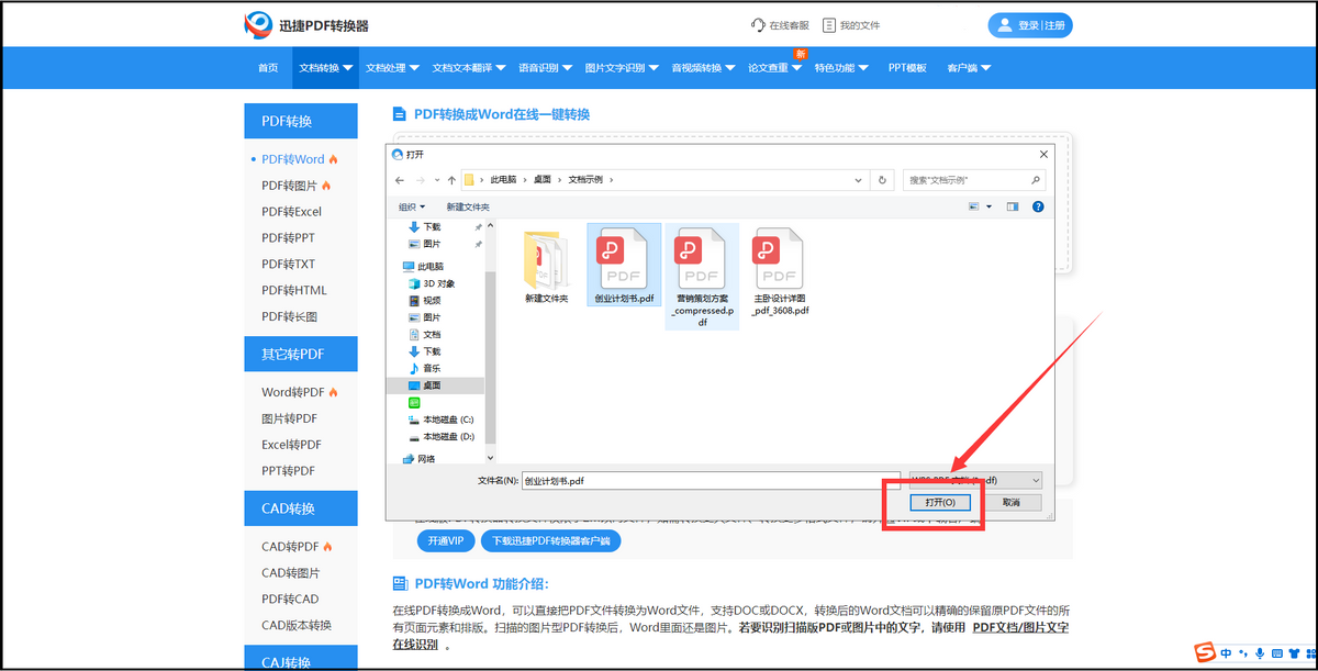 ① 首先,我们在浏览器中进入网页,选择【PDF转Word】,添加文件进来。