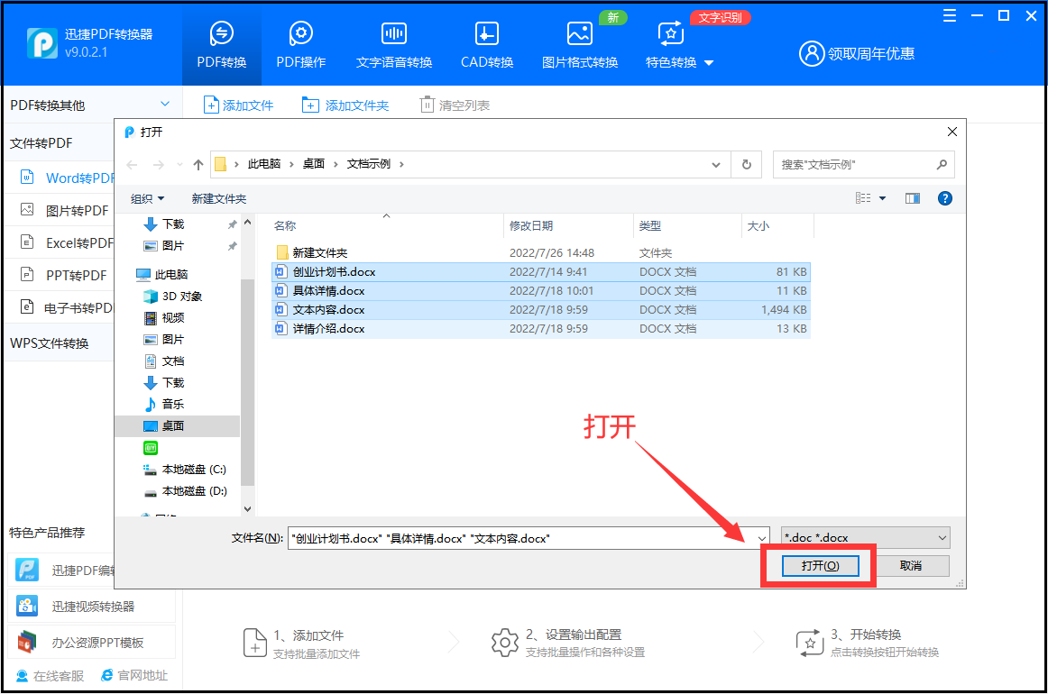 ② 我们点击添加文件后,在弹出的窗口中,可以选择PDF文件,点击【打开】添加进来。