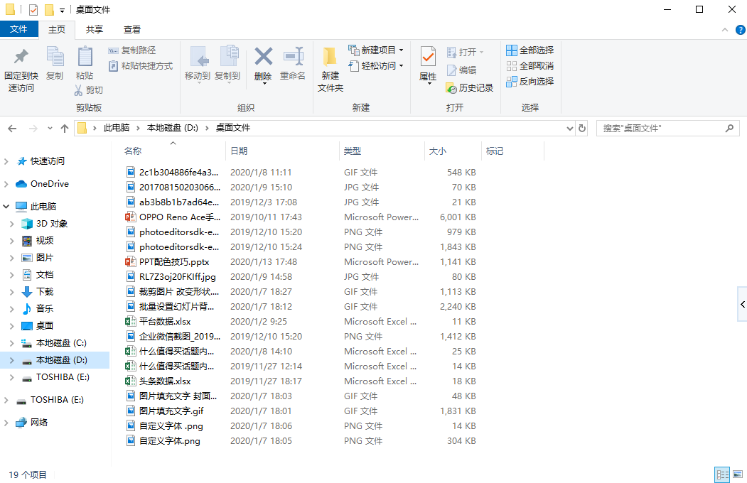 例如,现在我的D:桌面文件中有这些不同类型的文件: