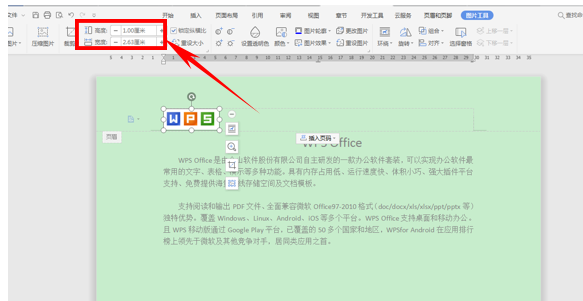 调整公司LOGO的大小,单击工具栏当中的图片工具,将LOGO的高度设置为1cm,宽度自动就调节成了2.63cm,再单击左对齐,将LOGO设置在文档的左上方。