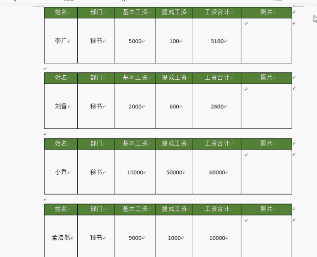 工资条都会做,带照片的工资条,是不是第一次听说,嘿嘿! 今天为大家介绍一下如何用word制作带照片的工资条。快来看看是怎么实现的?下面一起来制作吧!