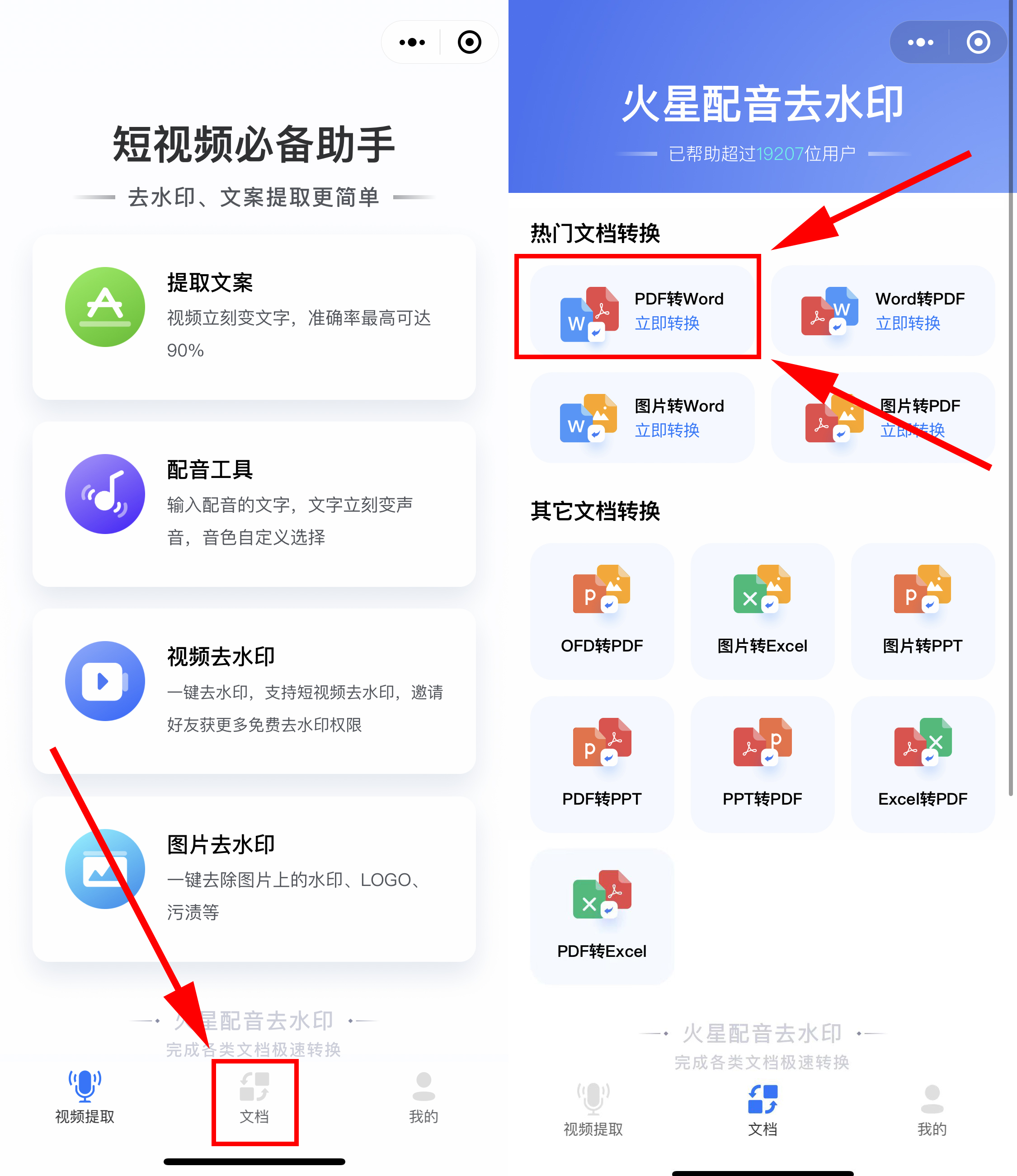 进入小程序后点击最下方选择“文档”,再选择“PDF转word”。