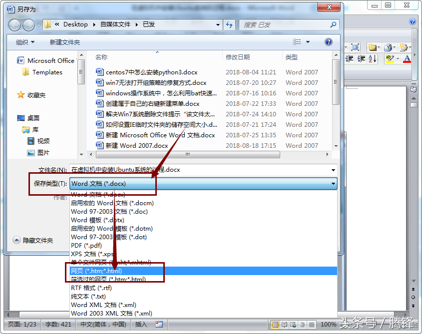 将Word另存为“网页(htm;html)”格式。关闭Word文档。