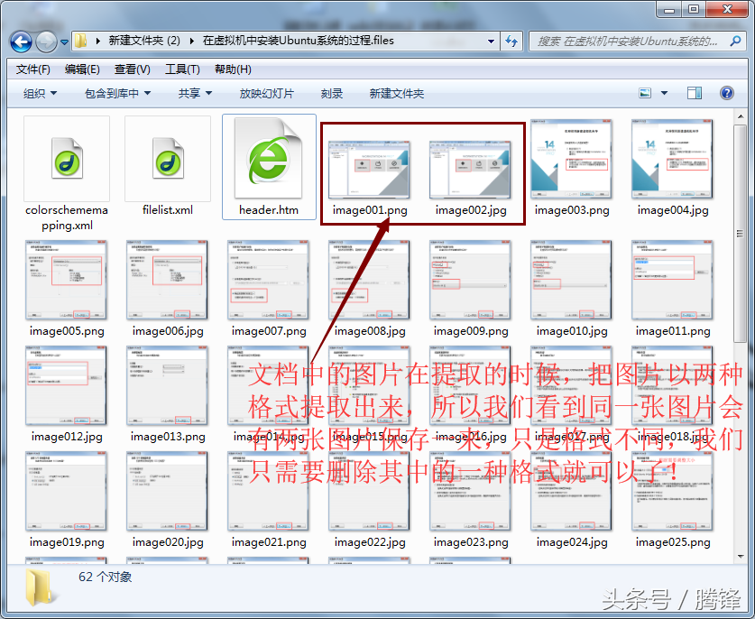 这就实现了把文档的图片批量提取出来的重复工作,细心的你会发现提取出来的图片中同一张图片都有两张,而同时你也会发现,它们是不同的格式,那么现在我们只需要把其中的一种格式的图片删掉就可以了!