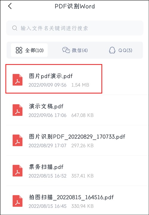 第二步:从手机中选择需要进行格式转换的pdf文档,导入工具中;