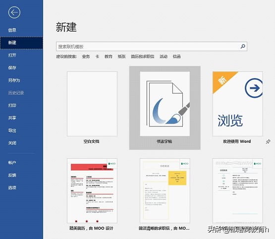 1.打开Word,单击【文件】-【新建】按钮,你会看到书法字帖。