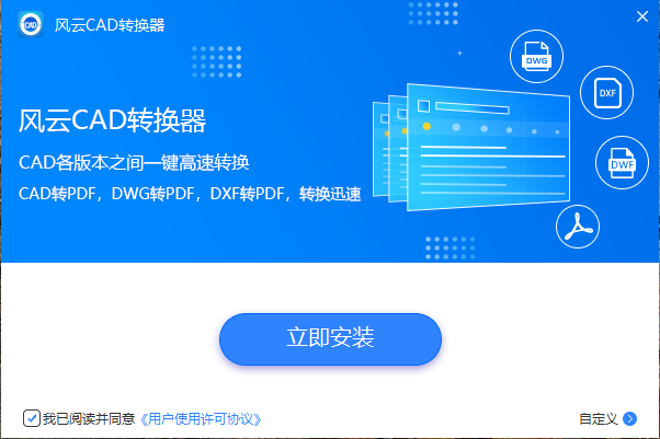 首先,我们本次教程需要用到的是风云CAD转换器,这是一款功能全面的CAD转换工具,支持多种不同类型和格式的文件,能够帮助用户轻松实现CAD图纸和PDF、图片文件的互转操作,同时还支持CAD版本之间的转换,方便用户获取所需的文件格式。体积不大,很快,只需等待几秒即可完成安装。