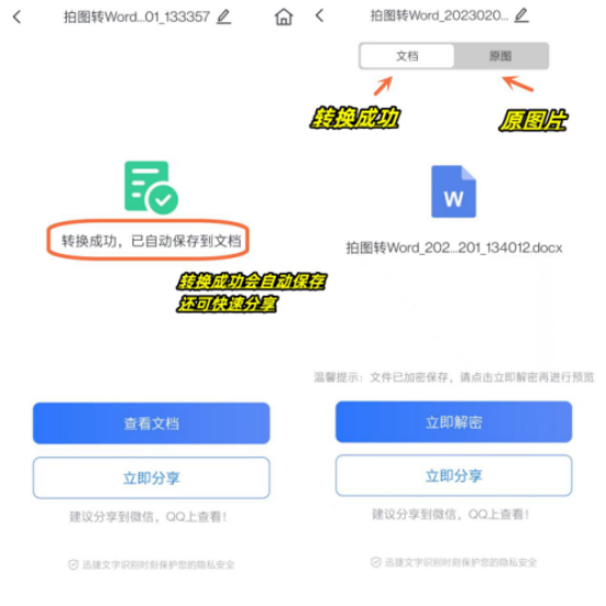 步骤三:文件转换成功后,直接可以看到对比图,满意后直接分享使用。