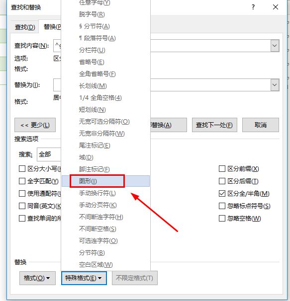 使用快捷键【Ctrl+H】,找到下面的【特殊格式】