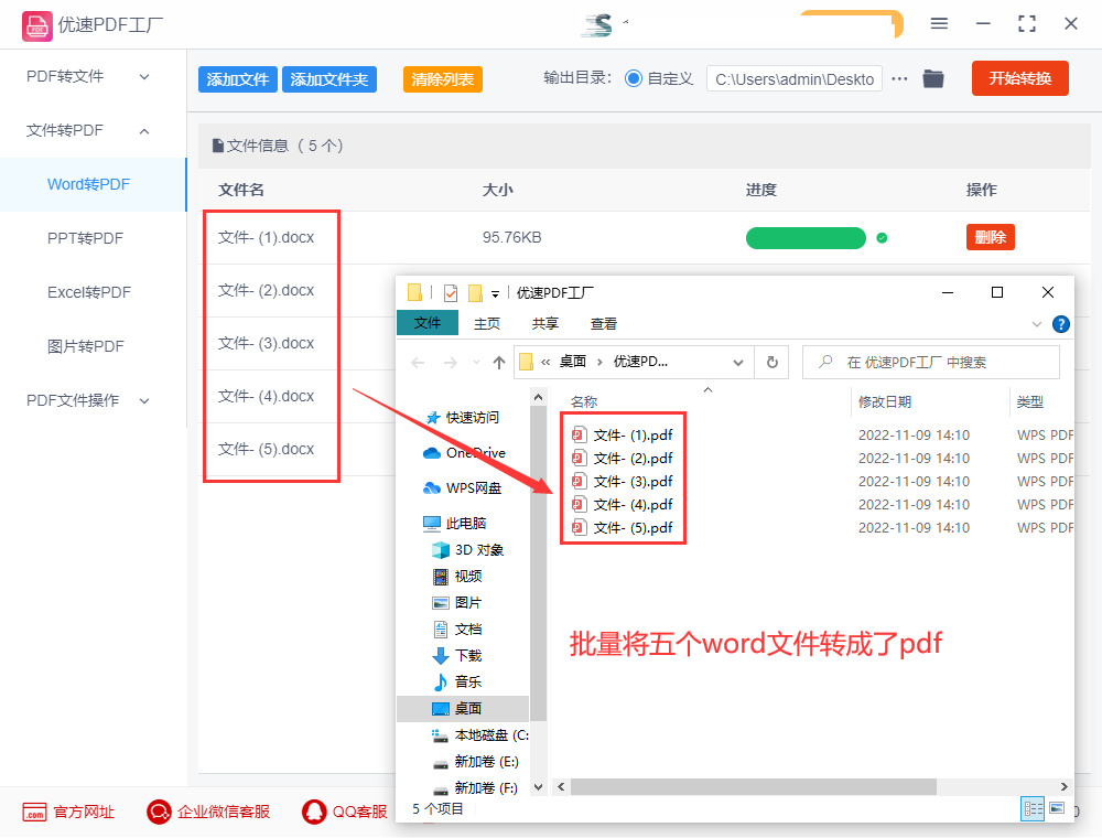 四、如图所示,从最终的转换结果可以看出,软件成功的将多个word文档一次性的批量转成了PDF格式,批量转换成功。