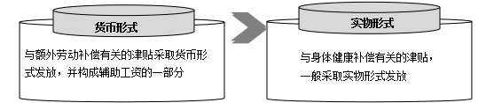 津贴的方法形式既有货币形式,又有实物形式,企业应根据自身的特点来确定采用哪种形式支付津贴。通常津贴的发放形式有以下2种,如图7-17所示。
