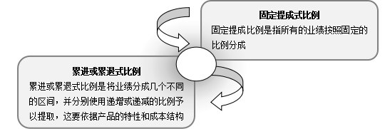 提成比例通常分为固定提成比例和累进或累退提成比例两种方式,对固定提成比例和累进或累退方式提成比例具体说明如图7-21所示。