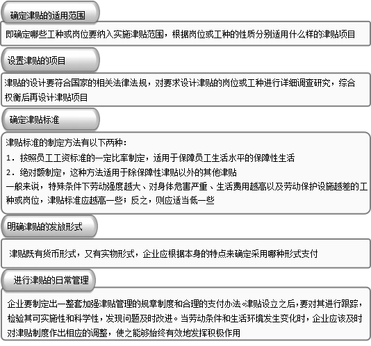 津贴工资的设计步骤一般遵循包括以下5个环节,具体内容如图7-18所示。