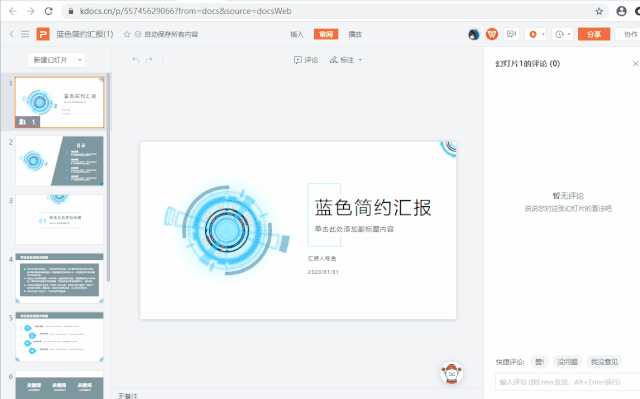 这样需要对方帮忙优化的时候,对方可直接在当页幻灯片中评论发表意见。