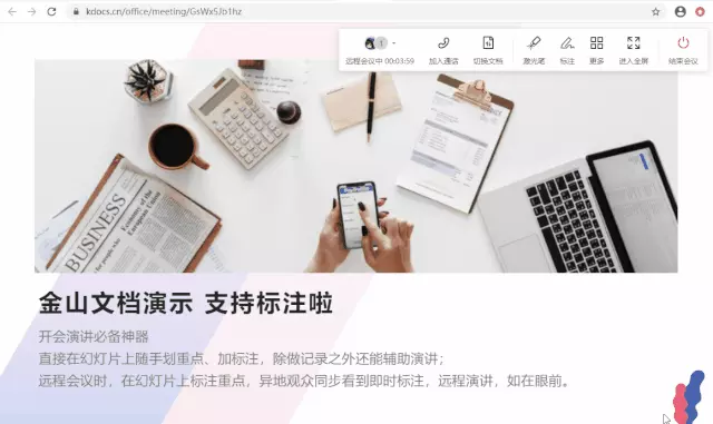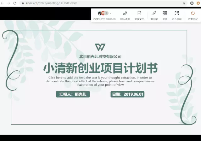 好吧,文档君承认,确实有很多异地的开会者已经不满足远程观看,他要发言,他要打断,他要抒发感想......这个时候怎么办?点击旁边的【加入通话】,直接一键语音加入会议,再也不用额外开启其他设备浪费流量还卡的难用的一匹,语音的时候配合激光笔在PPT上标记重点,声画合一,虽然远在天边依然可以掌控全场。