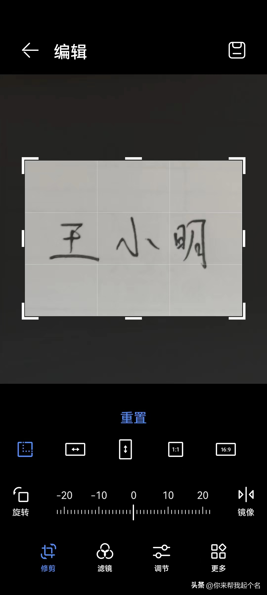 点击图片的编辑-修剪-拖拉编辑小框,只需截选出签名部分进行保存。