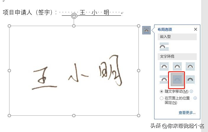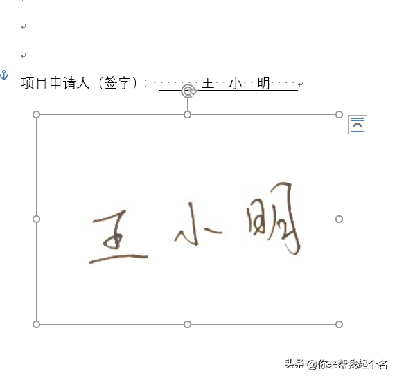 【第七步】拖拉图片,调整合适大小,并放置在待签字处的下方。