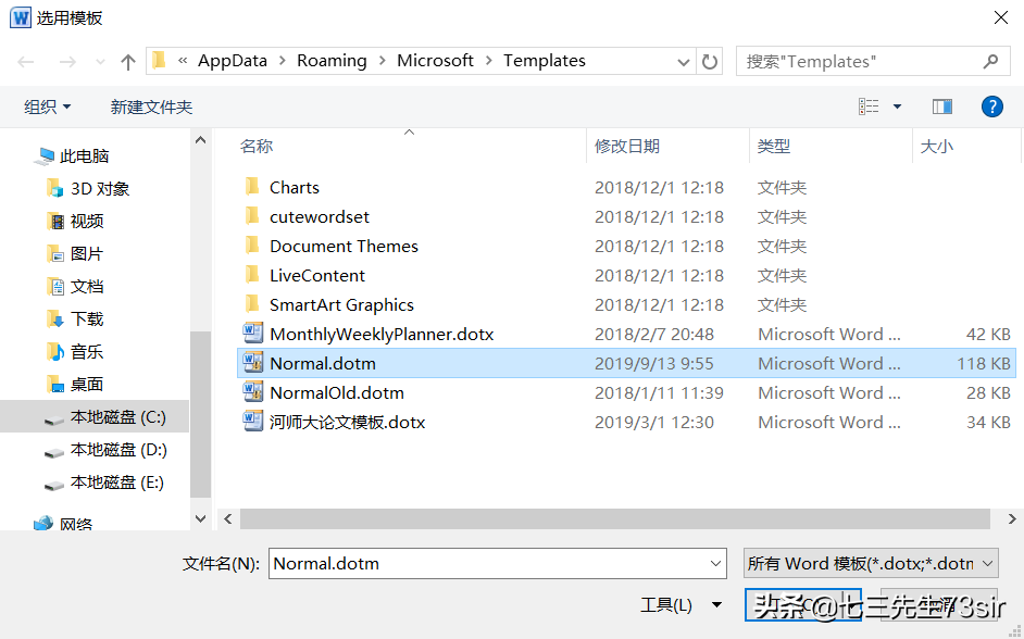 我们平时新建的Word文档都是根据Normal.dtom模板建立的,如下图所示: