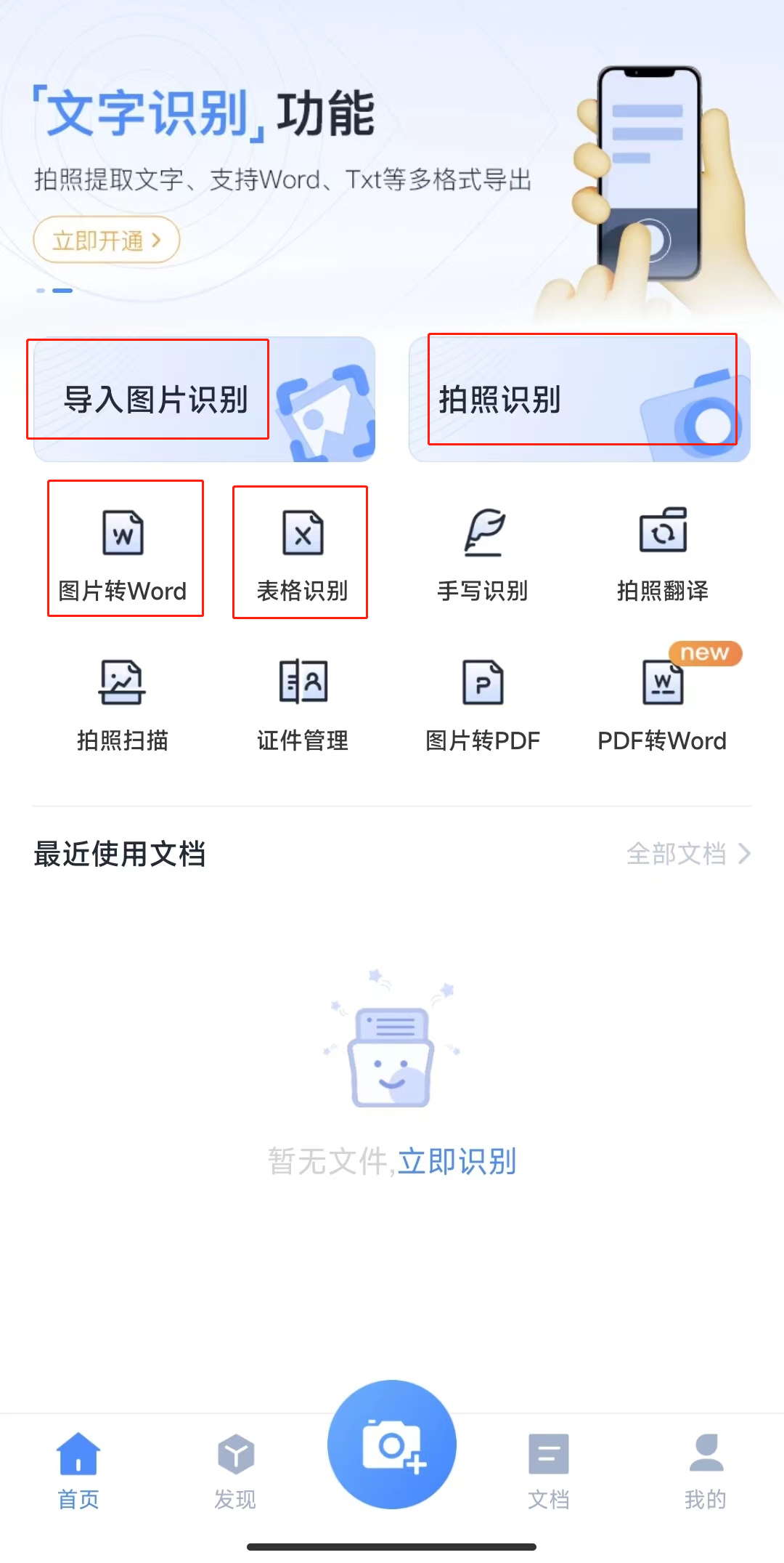迅捷文字识别可以直接用手机拍照提取文字【拍照识别】,也可以导入手机里的图片【导入图片识别】,还可以直接把图片转换成word【图片转Word】,甚至可以直接把图片中的表格直接转换成Excel【表格识别】。