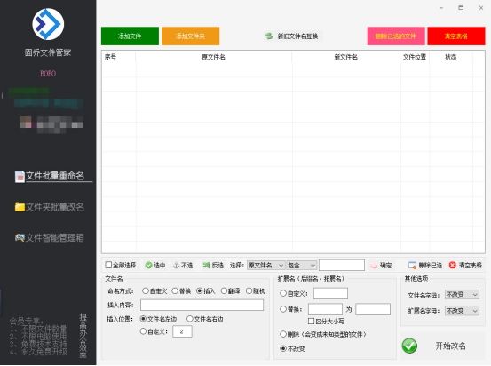 2.2、大家在左侧的工具栏中选择文件批量重命名的功能,然后直接将所有需要改名的文件进行添加,支持添加表格、图片等多种格式的文件,大家可以需求去选择添加