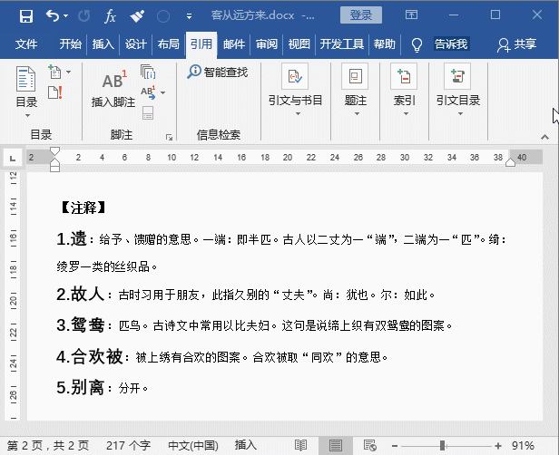 第四步:点击【引用】-【目录 】组中的“目录”按钮,在弹出的菜单中选择“自定义目录”命令,即可插入目录。