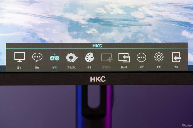 屏幕右侧底部设置5个OSD按钮,下边框对应喷涂了OSD按钮功能标识。虽然不比单颗五维按键来的简便,但是通过一段时间适应就能上手,而且得益于HKC友好的OSD菜单设置,操控体验也足够便捷。