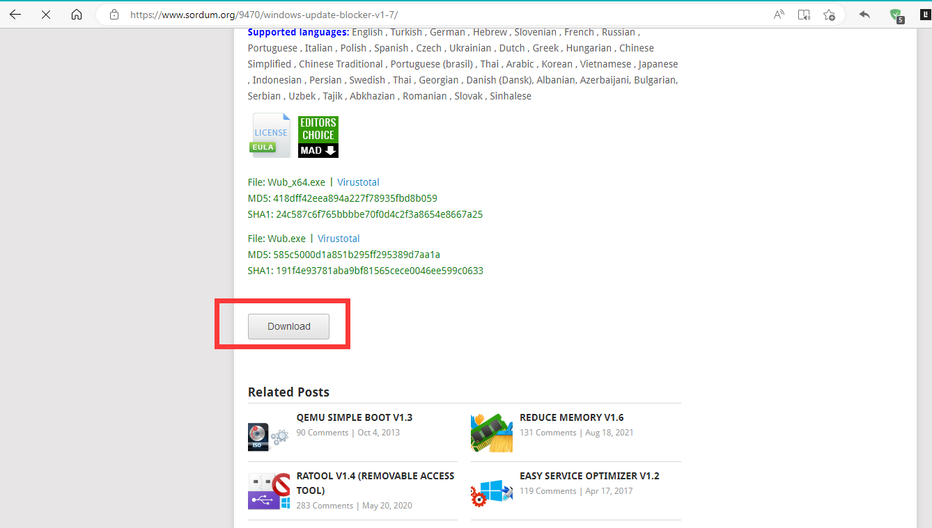 首先,Windows Update Blocker作为一款系统工具,是免安装的,即点即用,同时,是免费的!那些打着官方汉化幌子包装的,都是耍流氓!因为官方自带了简体中文。官方下载链接如下:www.sordum.org