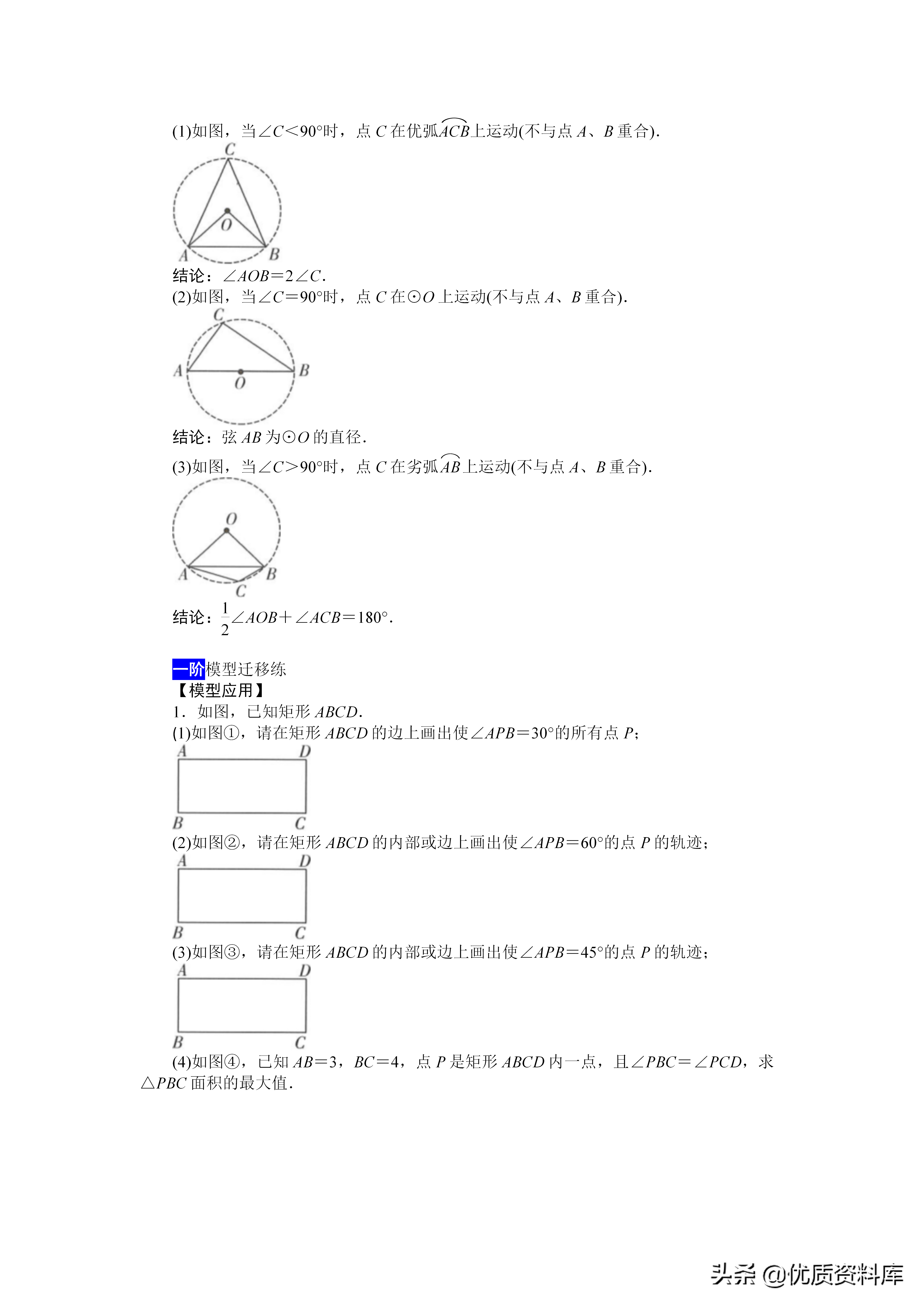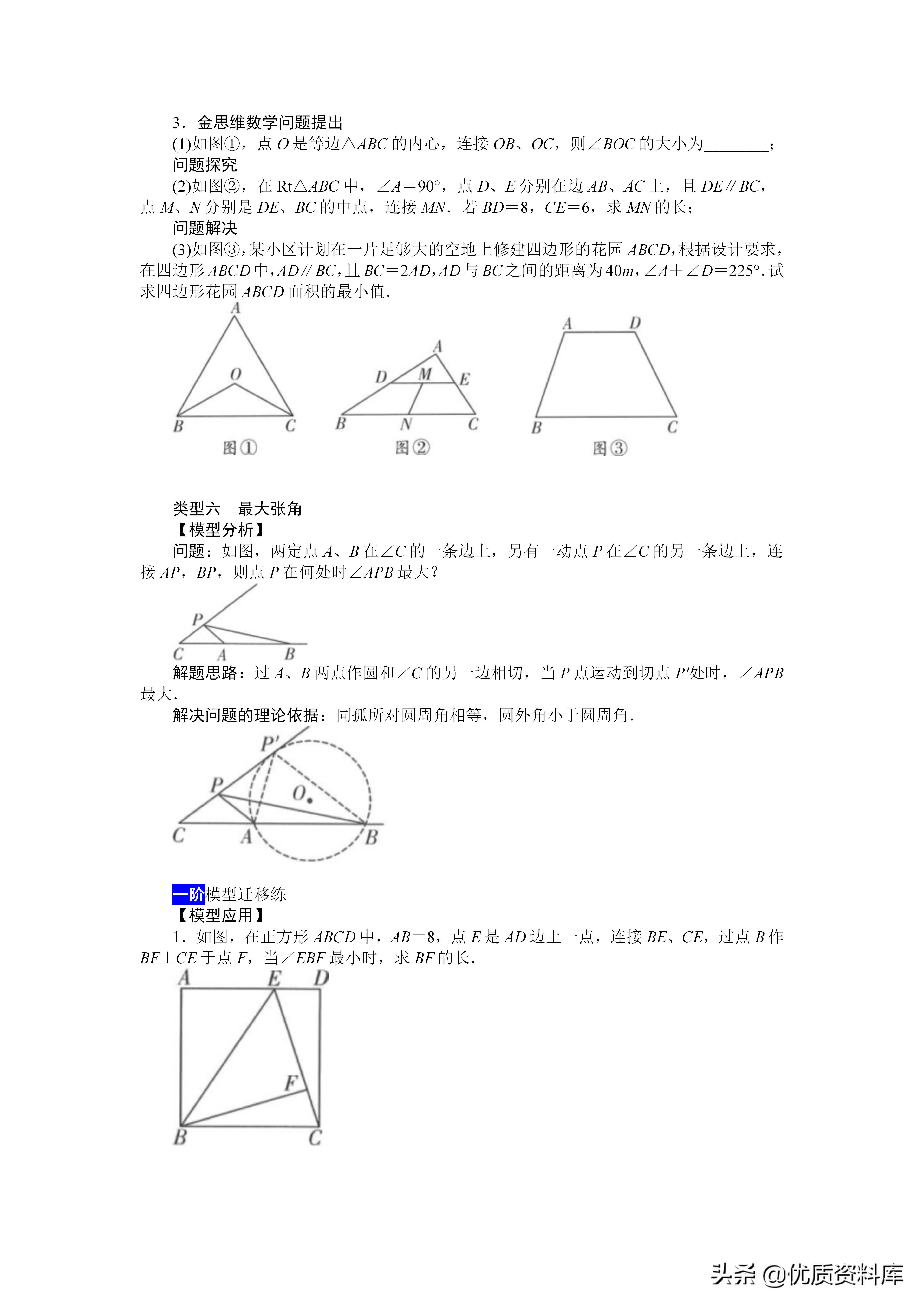 解决问题的理论依据:同孤所对圆周角相等,圆外角小于圆周角