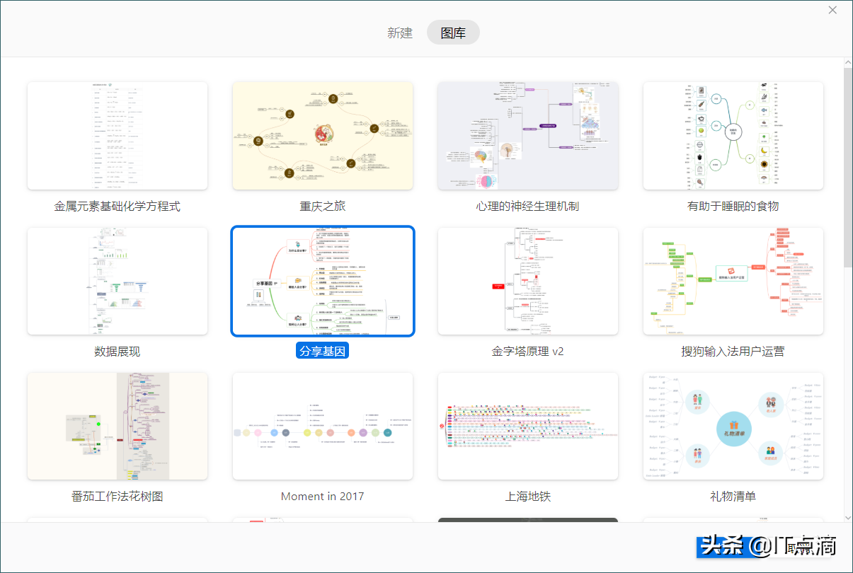 当然我们也可以选择图库里面的模板(图库里面的模板是一些已有的思维导图案例模板)
