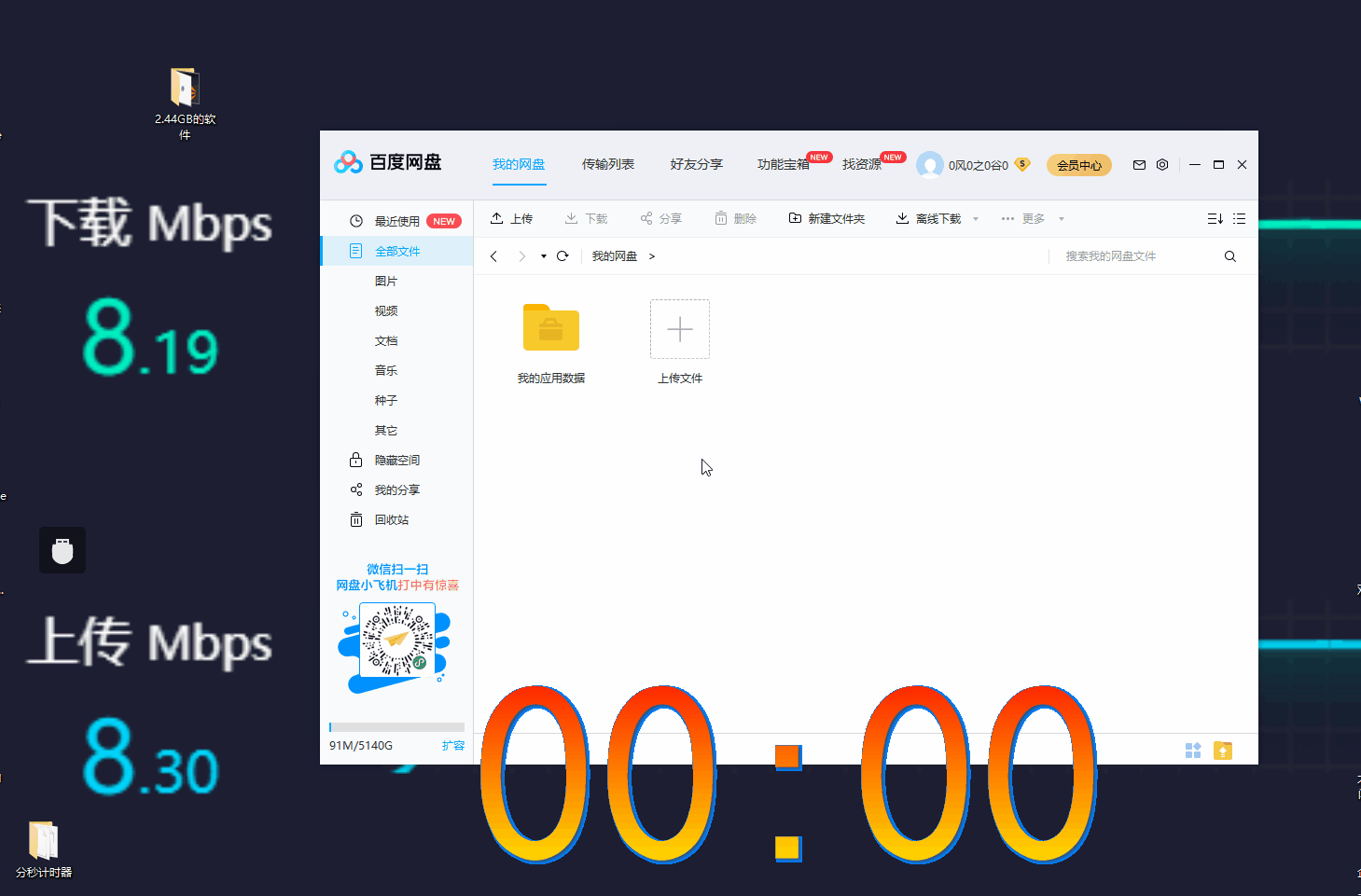 实际测试过程中,百度云需要至少1分钟才能搞定这个“浩大”的文件。(时间太长截取了前34s)