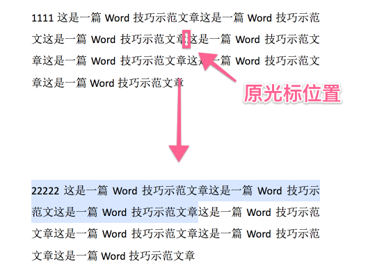 1.1、SHIFT+HOME快速选中光标所在位置至改行所在的开头位置,效果如下图:2、CTRL+END跳转到文档末尾